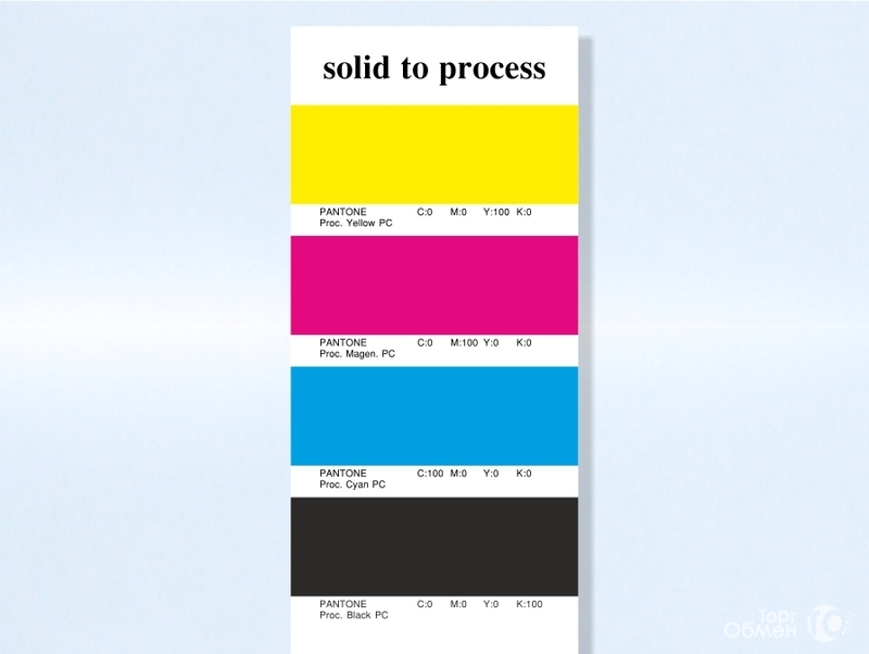 Предназначен для представления различных цветов при четырехкрасочной стандартной печати CMYK и визуального соответствия этих цветов цветам сплошной плашки, напечатанной краской PANTONE.